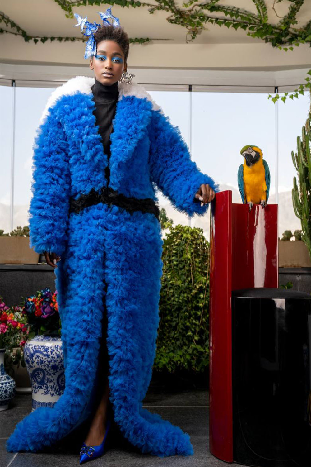 Be the first to review “Full length pleats and ruffles large blue evening or event coat – black waist long sleeves”